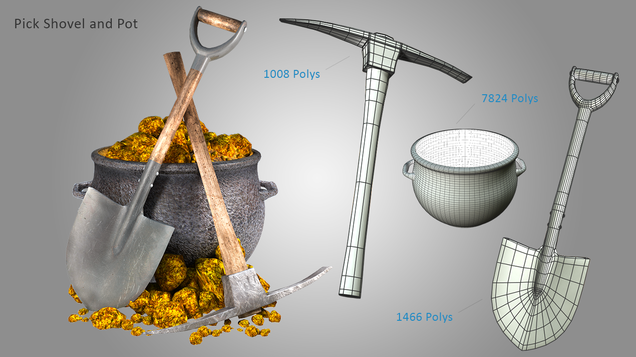 These are 3D assets that I created mainly for rendering of 2D graphics but some are for in-game use.