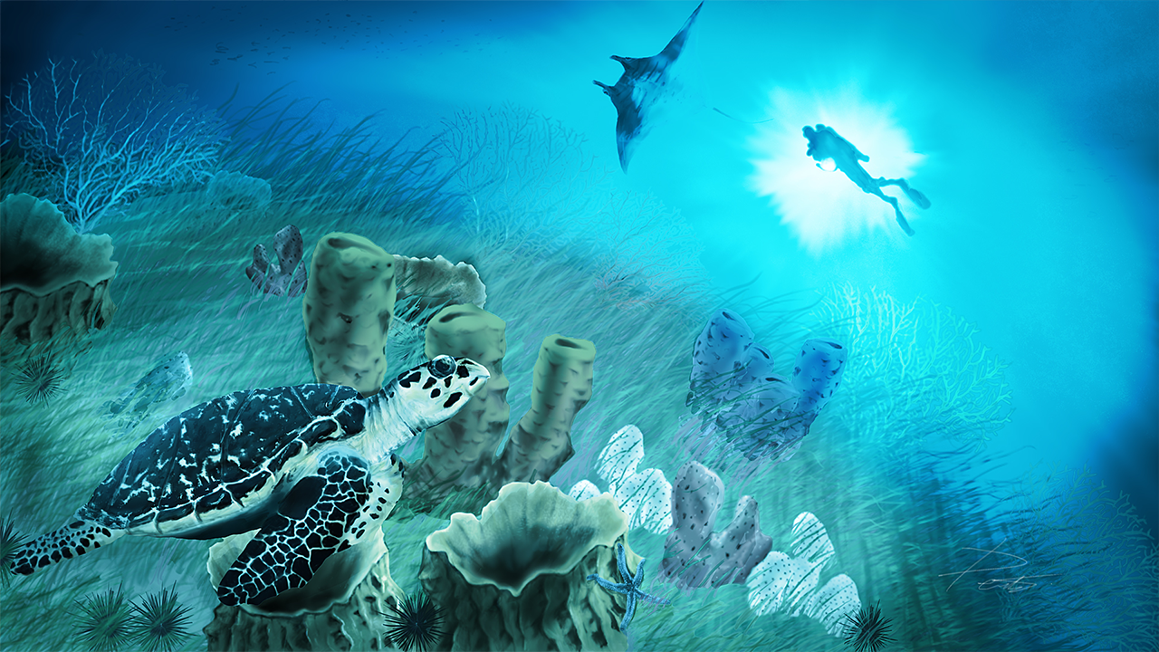 A concept painting done in Photoshop for a dive simulator game I am working on.